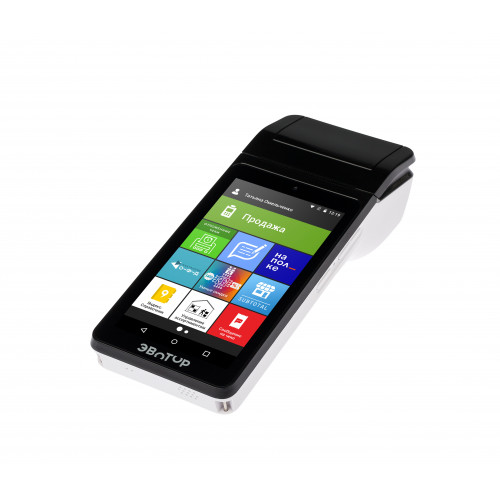 Смарт-терминал Эвотор 5 — мобильная касса под 54-ФЗ. Подойдёт для маленьких магазинов и рынков. С ним можно работать на выезде и использовать для курьерской доставки.